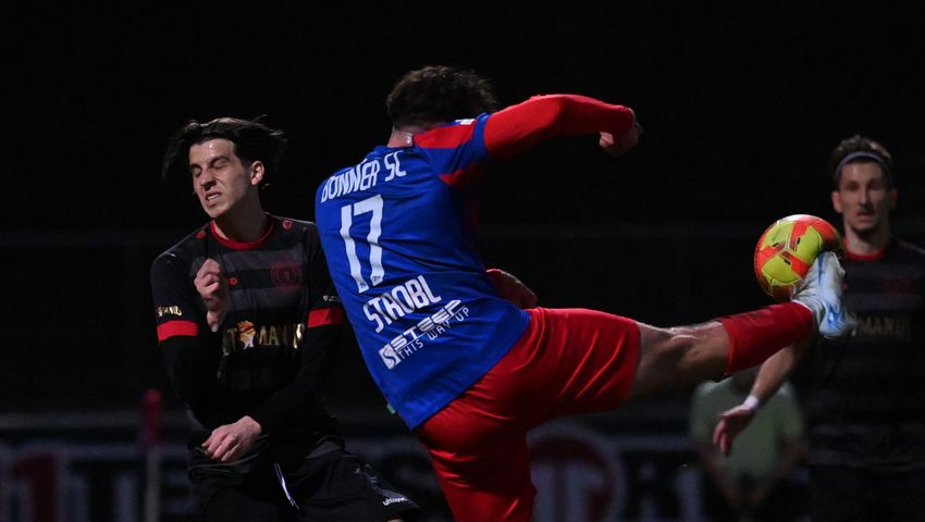 Die ersten Möglichkeiten gehörten den Gastgebern durch Marc Brasnic, der in aussichtsreicher Position jedoch zu lange zögerte (11.). Ein abgefälschter Versuch von Strobl landete am Pfosten (15.) und dann vergab Markus Wipperfürth (17.). Der Schuss von Omerbasic kam zu zentral (21.). In der 43. Minute rettete Gäste-Keeper Dominique Mittenzwei mit einer Fuß-Abwehr gegen Brasnic. So blieb es trotz eines eindeutigen Chancenplus torlos zur Halbzeit.