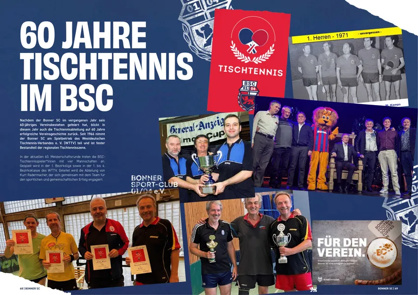 Nachdem der Bonner SC im vergangenen Jahr sein 60-jähriges Vereinsbestehen gefeiert hat, blickt in diesem Jahr auch die Tischtennisabteilung auf 60 Jahre erfolgreiche Vereinsgeschichte zurück.